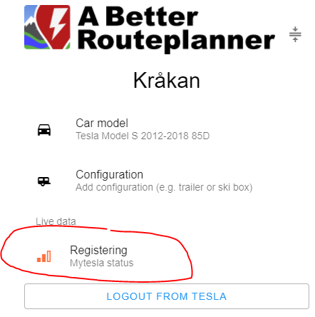 Sedan i går så får jag inte längre någon live data i ABRP Premium. Jag har testat att logga ut och logga in till MyTesla både i IOS-appen och i på webben men den fastnar bara på "Registering" utan att komma vidare.