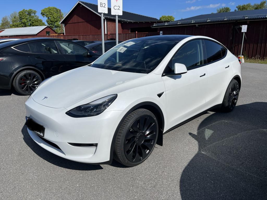 Tesla Model Y Performance vit uttagen 2022-05-23