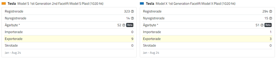 29 st nyregistrerade under året hittills, oavsett vad man tycker om Plaid så gissar jag att på en befolkningsmängd på 11 miljoner så kommer det finnas några som kan tänka sig en 3 år gammal Plaid 2027, landar årsförsäljningen på under 50 st bilar så tror jag efterfrågan kommer vara högre jämfört med om den varit 250 st bilar.