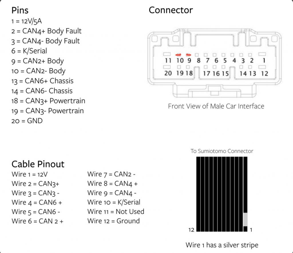 OK nu har jag forskat och kommit fram till vilka pins som ger information från BMS till SMT. Man kan köpa en helt vanlig Model S 2015-> adapter och stifta om den enligt följande för att få den att funka med SMT. Pin 1 är 12V den kan sitta kvar där den satt. Pin 20 är jord, den kan också sitta kvar. Kruxet är att flytta pin till 9 som är CAN2+ Body och pin 10 som är CAN2- Body. När man har gjort det behöver man också ändra i SMT Settings till 3/Y istället för S/X (fråga inte varför)