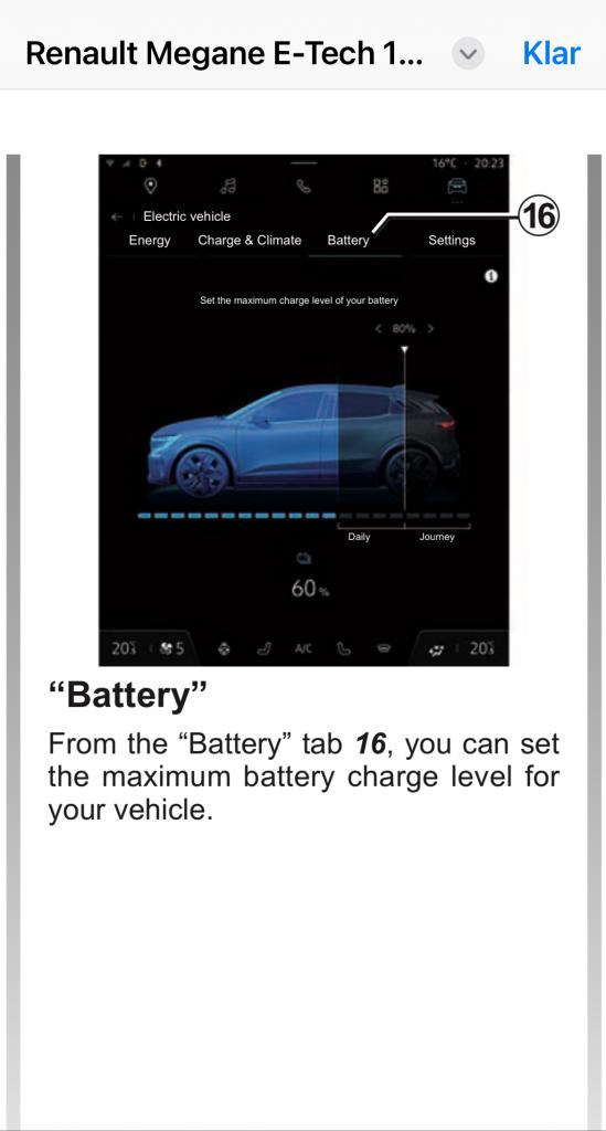 Men eftersom det inte går att ställa på den bilen blir ju effekten att bilen blir ståendes varje natt med 100%. Det är väl inte optimalt, hade man kunna ställa 60, 80 eller 90 hade det ju varit att föredra.