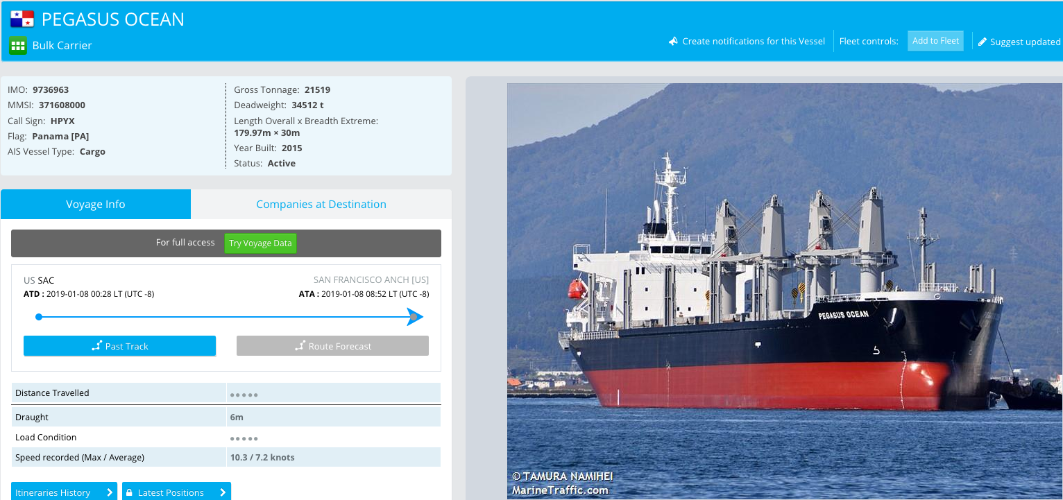 Pegasus Ocean HPYX är inte ett RoRo fartyg.