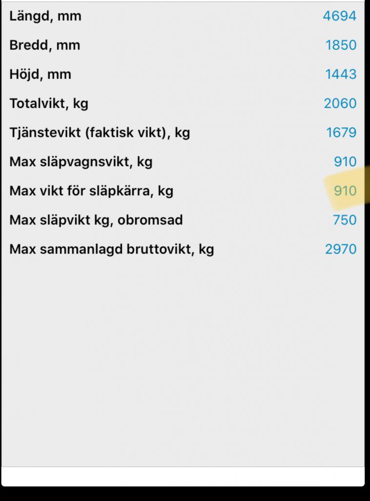 Ser att när man konfigurerar bilen står det att dragkroken är godkänd för 910kg.
