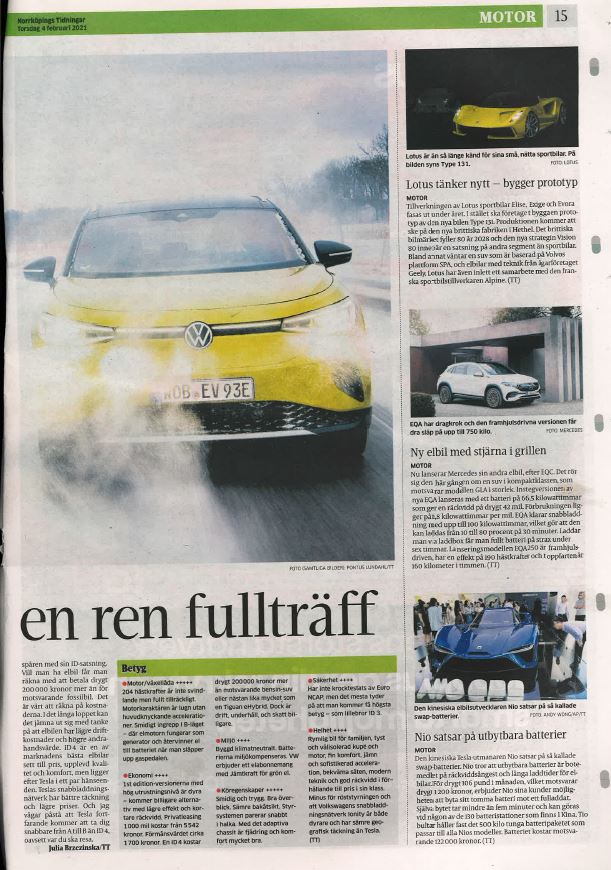 Test av ID.4 som Norrköpings Tidningar köpt in...