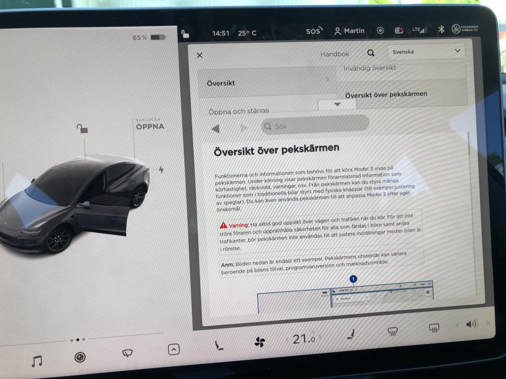 Någon mer som råkat ut för att inte användarhandboken fungerar, försöker man så låser sig skärmen och kräver omstart för att komma igång igen, SR+ 2021, 60 mil?