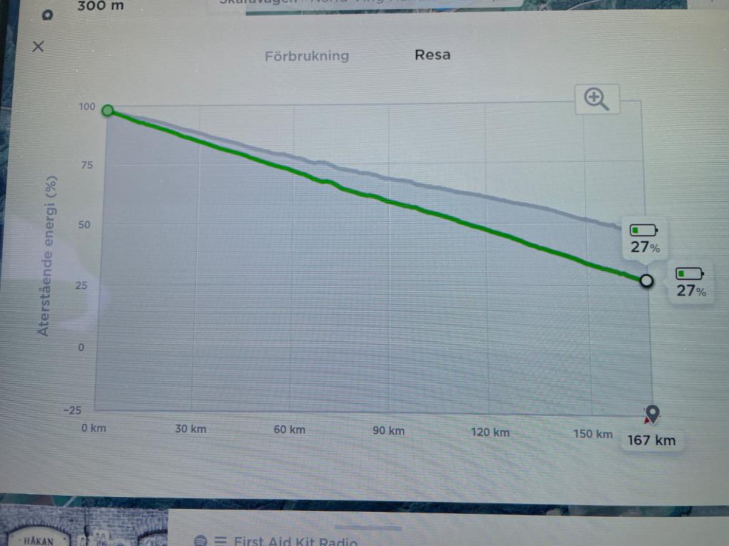 Tänkte dela med mig av dagens resa på 17 mil (enkel resa) med vår Model X 100D och hästtransport. Tidigare har vi bara kört korta sträckor så jag fick en dos räckviddsångest när jag försökte räkna ut om/när/var vi behövde ladda. Kom tidigt fram till att risken för urladdat batteri var litet men tycker det är väldigt svårt att beräkna förbrukning. Hoppas dessa siffror kan vara till hjälp för någon annan i samma situation.