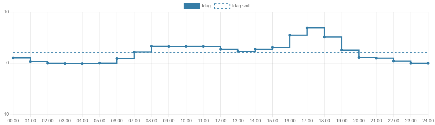 Tittade på dagens spotpriser. "Jaha högsta timpris 6.35 - som vanligt" tänkte jag.