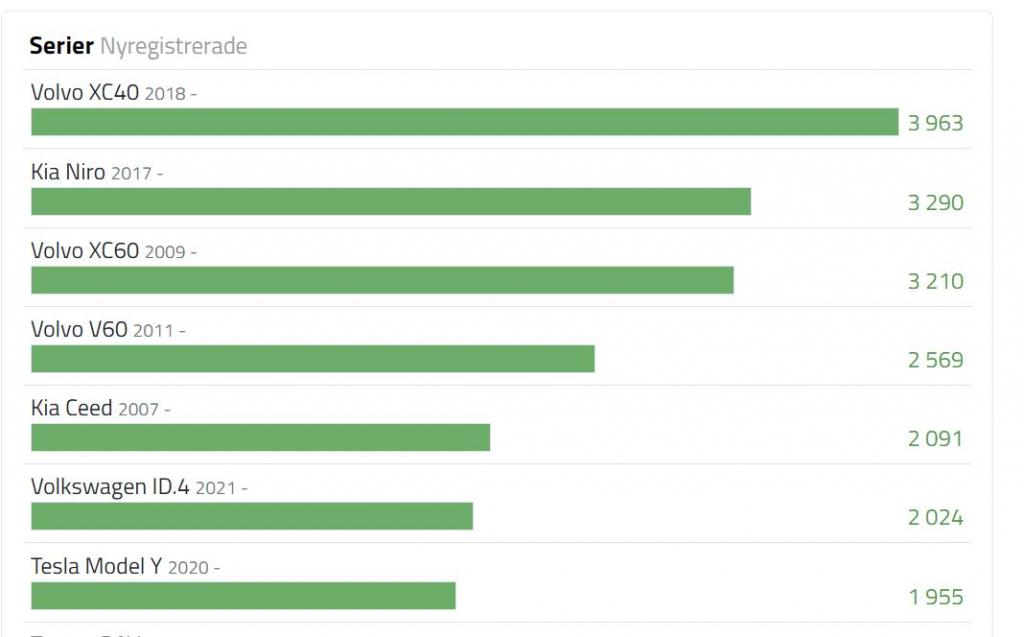 Fokuserar man på elbilar så är det "bara" 2 355 st XC40 registrerade hittills i år, så där är Tesla Y förbi :D