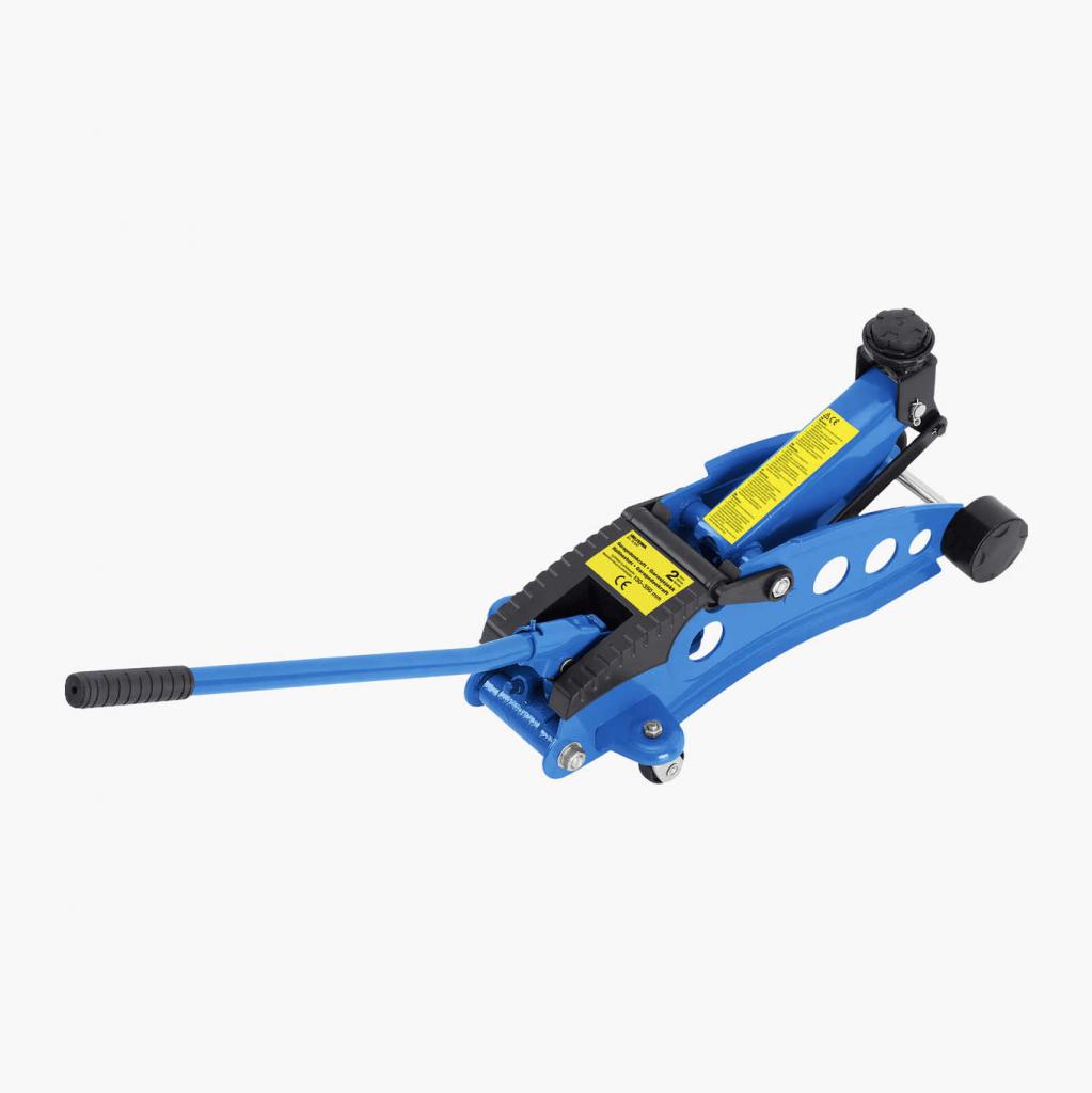 Jag kör med två garagedomkrafter och lyfter en sida i taget. Går ju egentligen med en men har man två känns det säkrare. Använder inga bockar eller liknande som säkring då.