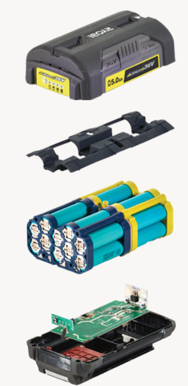 I det här gängen går det ju att visa hur det ser ut inuti. 18650-celler, månne?