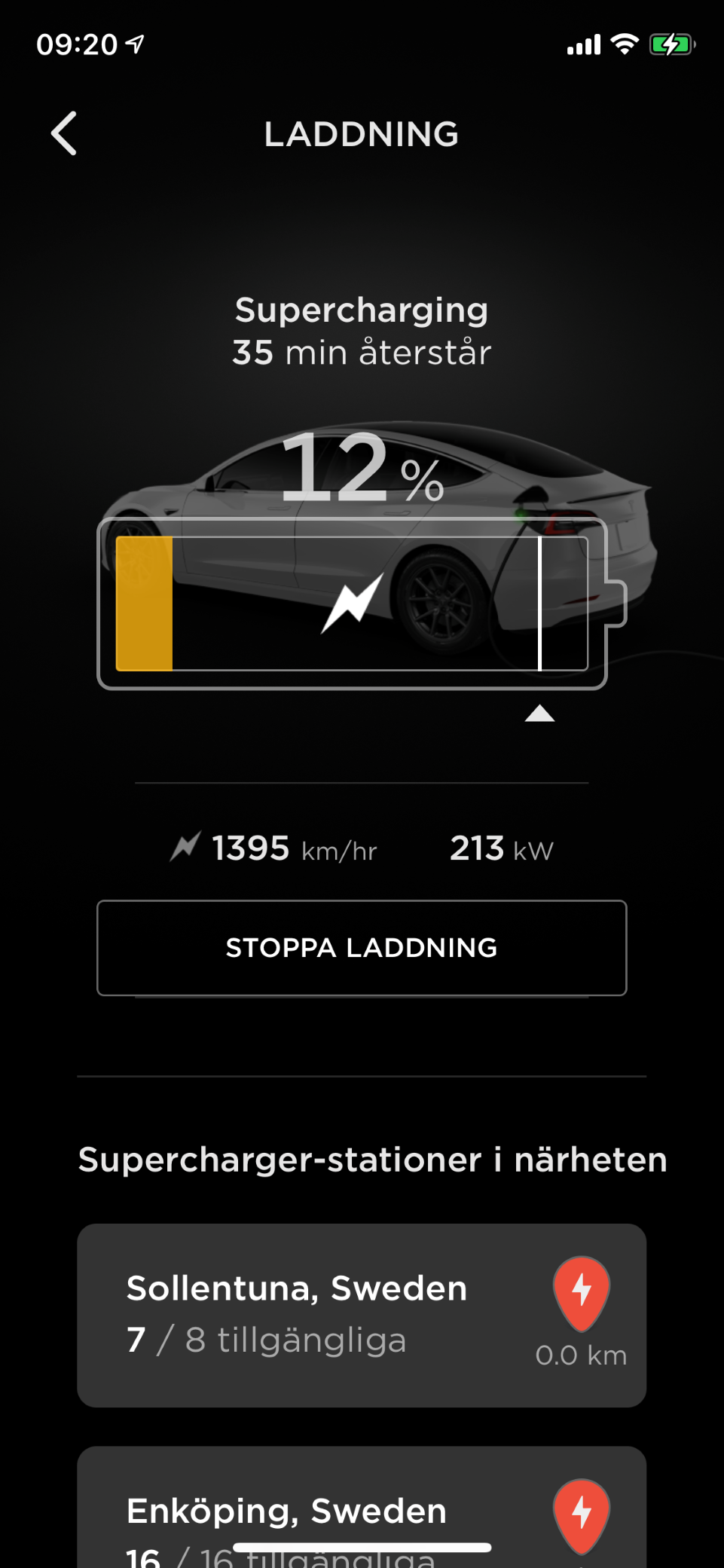 Kom upp i 251kw peak på nya Superchargern vid Wismar (Tyskland) i September.