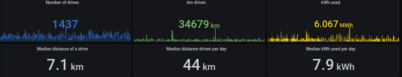 Kul annars att det verkar finnas så många varianter på Teslamateuppsättning! Har kört min egen sen augusti 2020, och haft bilen sedan i mars. Synd att de första månaderna inte är med, jaja.