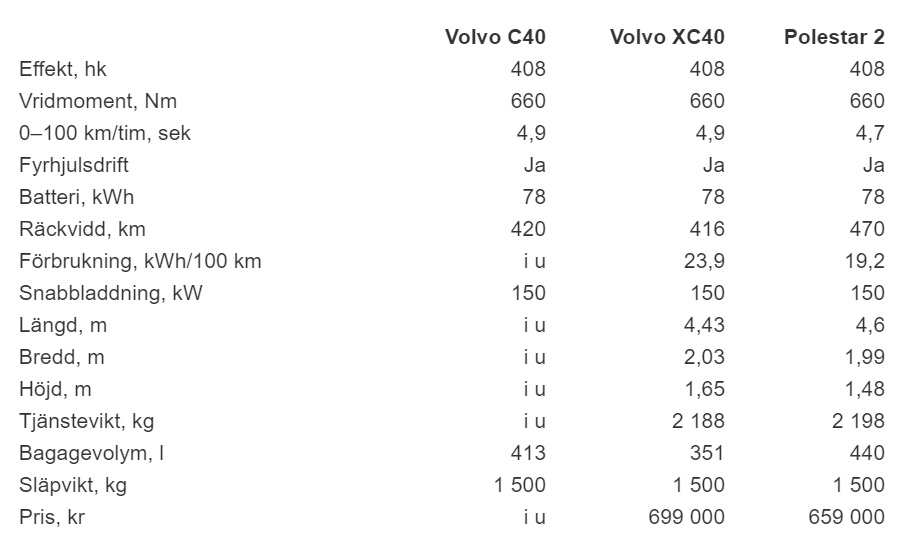 Ingen stor skillnad mot Volvo XC40 och Polestar 2.