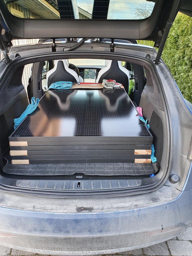 Teoretiskt bör man få in kring 10-11st upp till hatthyllan, även om det fällda ryggstödet gör att man ju får en klack som stjäl lite utrymme. Tänker att någon här säkert har erfarenhet av att transportera paneler i sin Tesla. Måtten på panelerna jag tänkte transportera är 1650x992x40 vilket låter som att de skall få plats.