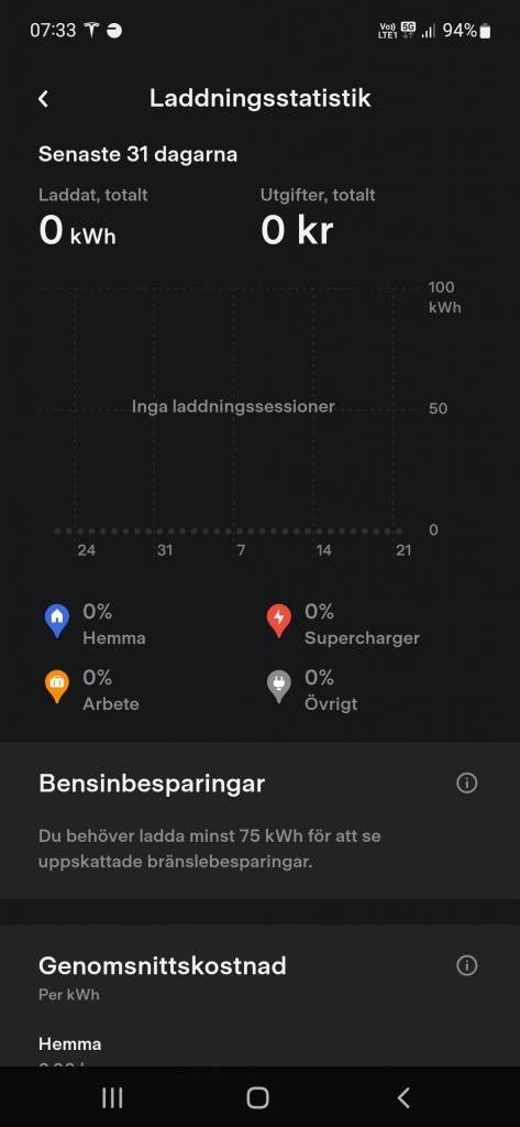 Ändå blir snittpriset inkl laddningen hemma 1.19:-/kWh.
