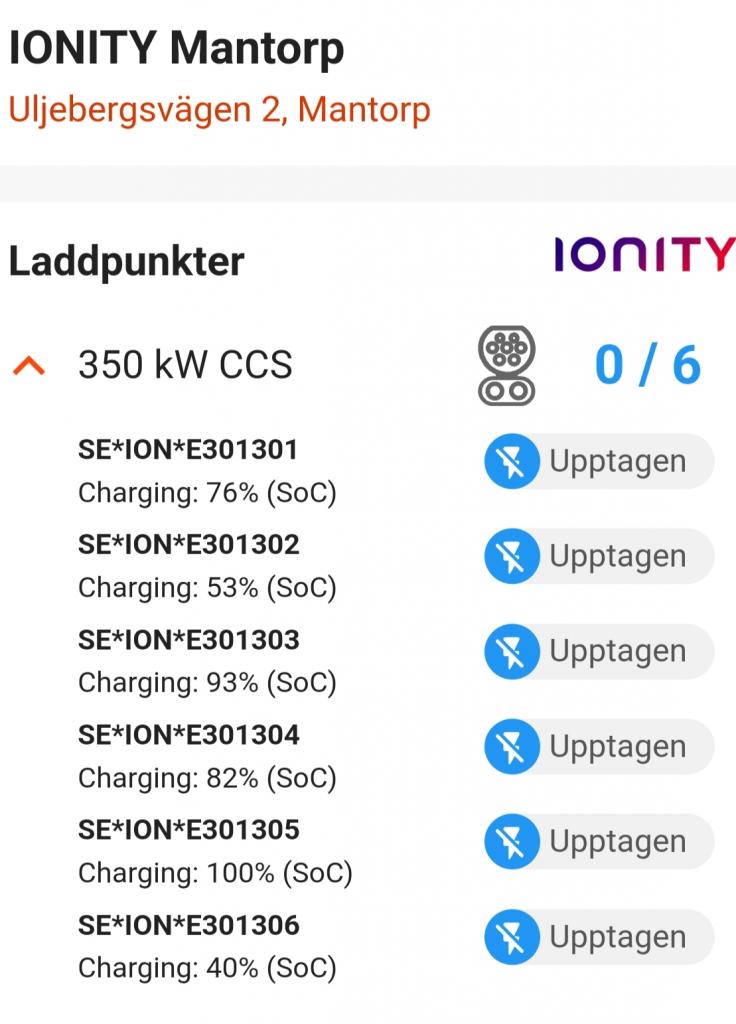 Använder ionity när jag kör utanför rusning, då är de sjukt bra…annars finns det som tur är vift många andra laddare att välja.