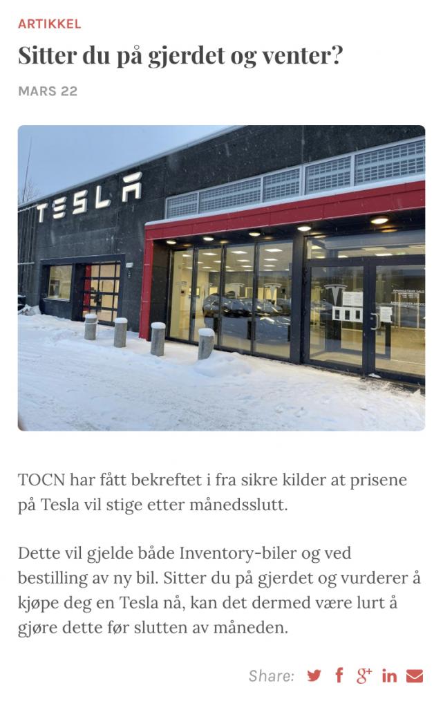 I och med att de levererar en hel del bilar precis innan kvartalsskiftet så tänker jag att en eventuell sänkning lär ske tidigast 15april så att de inte åker på massa bilar som lämnas tillbaka. Höjning kan dock ske från 1april.