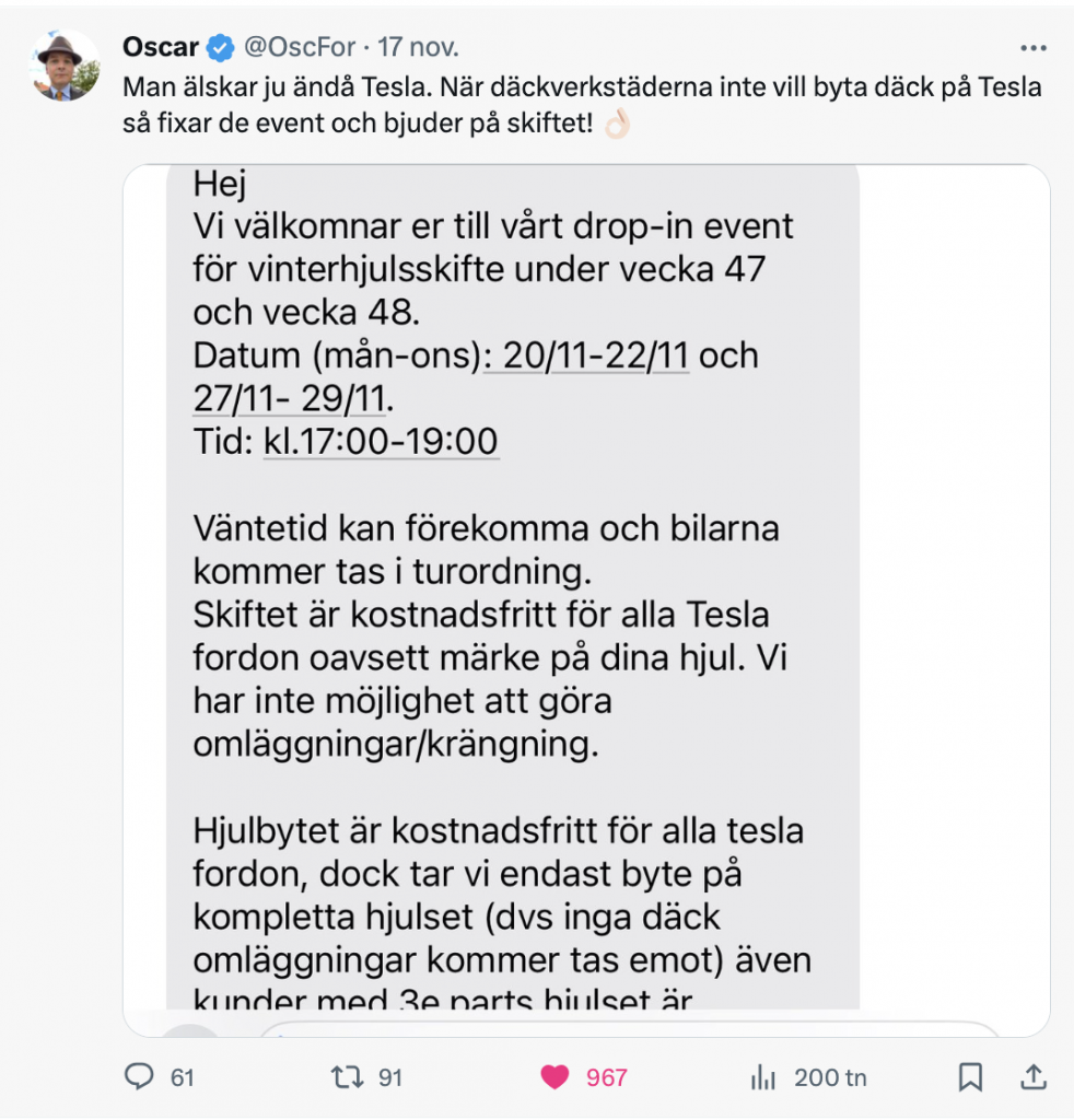 Och kommentar till dina andra påståenden, det är brist på mekaniker i Sverige sedan många år, varför skulle man jobba på Tesla om villkoren är skit eller förändras över en natt?