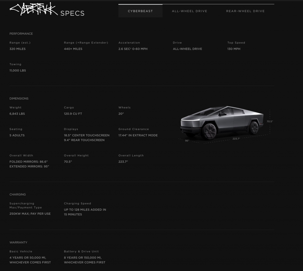 Nåväl, Elon håller iallafall tillsvidare utfästelsen att den ska gå att köpa för under 50 000$ Däremot blev det väl lite si och så att räckvidden skulle vara 400-500 miles, minst, för toppmodellen.spacecoin skrev: ↑30 nov 2023 21:52Den första kommer aldrig att hända gissar jag.