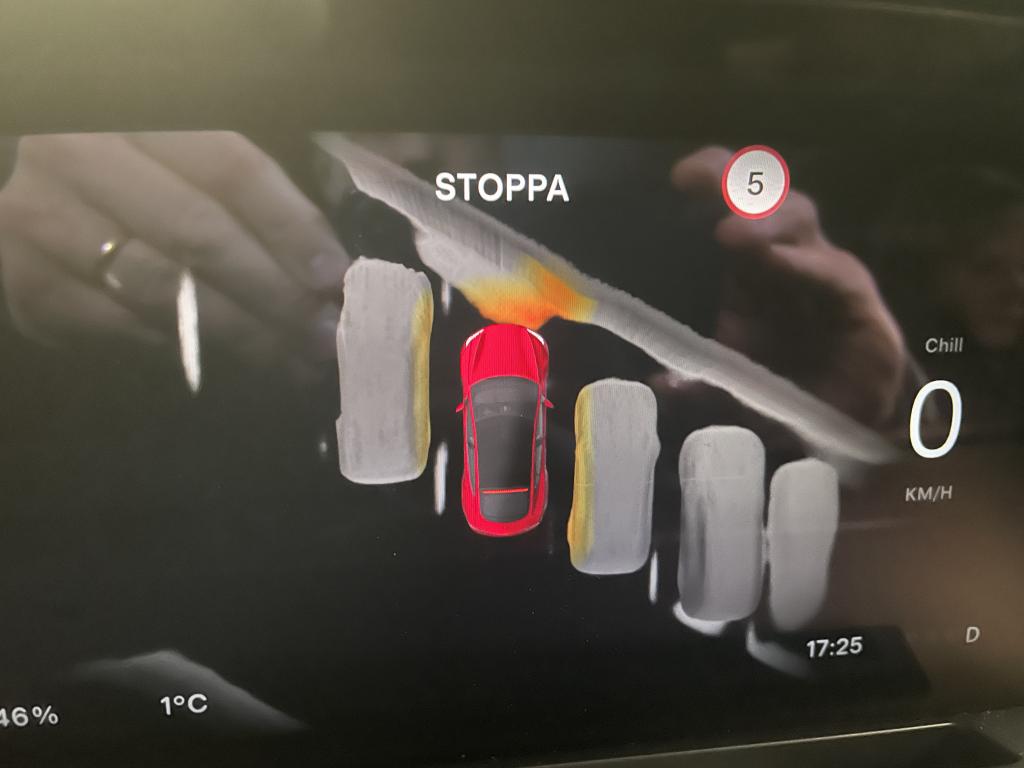 När jag kom upp på motorvägen orsakade andra bilar att det stänkte upp fukt på min vindruta. Jag körde med AP aktiverad och torkarautomatiken på. Det blev bara mer och mer fukt på rutan, men AP fortsatte som om allt var frid och fröjd. Torkarna vägrade gå igång. Till slut blev rutan så blt och smutsig att det var rent vansinnigt att köra så, vilket gjorde att jag duttade på spaken för att starta torkarna. På vägen tillbaka från Stockholm var det gles trafik och inte några problem med sikten, men då ville bilen begränsa farten på farthållaren.