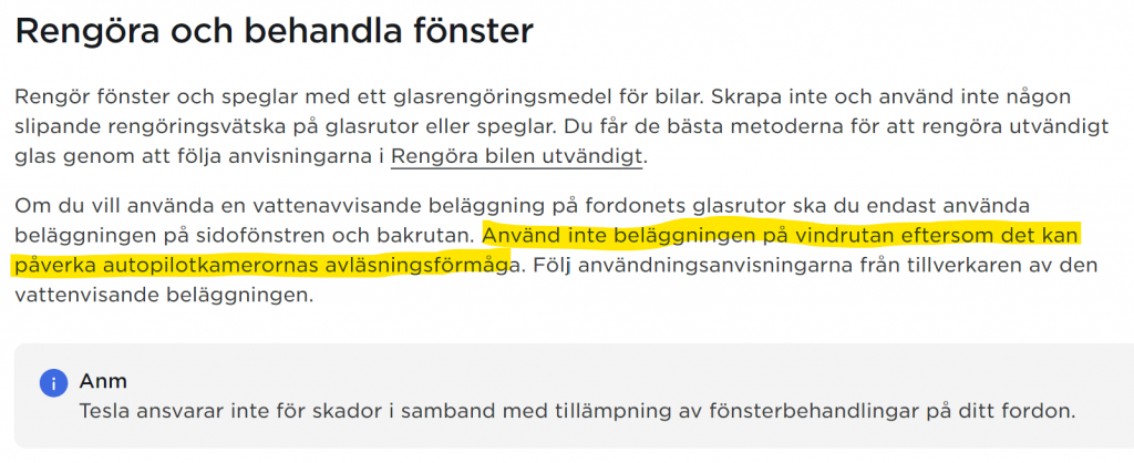Jag har alltid behandlat vindrutan på min model S (Raven) med vattenavstötande medel och inte märkt att det försämrat autopiloten. Dock aldrig jämfört eftersom rutan alltid varit behandlad. Har någon mer info/källor angående detta?
