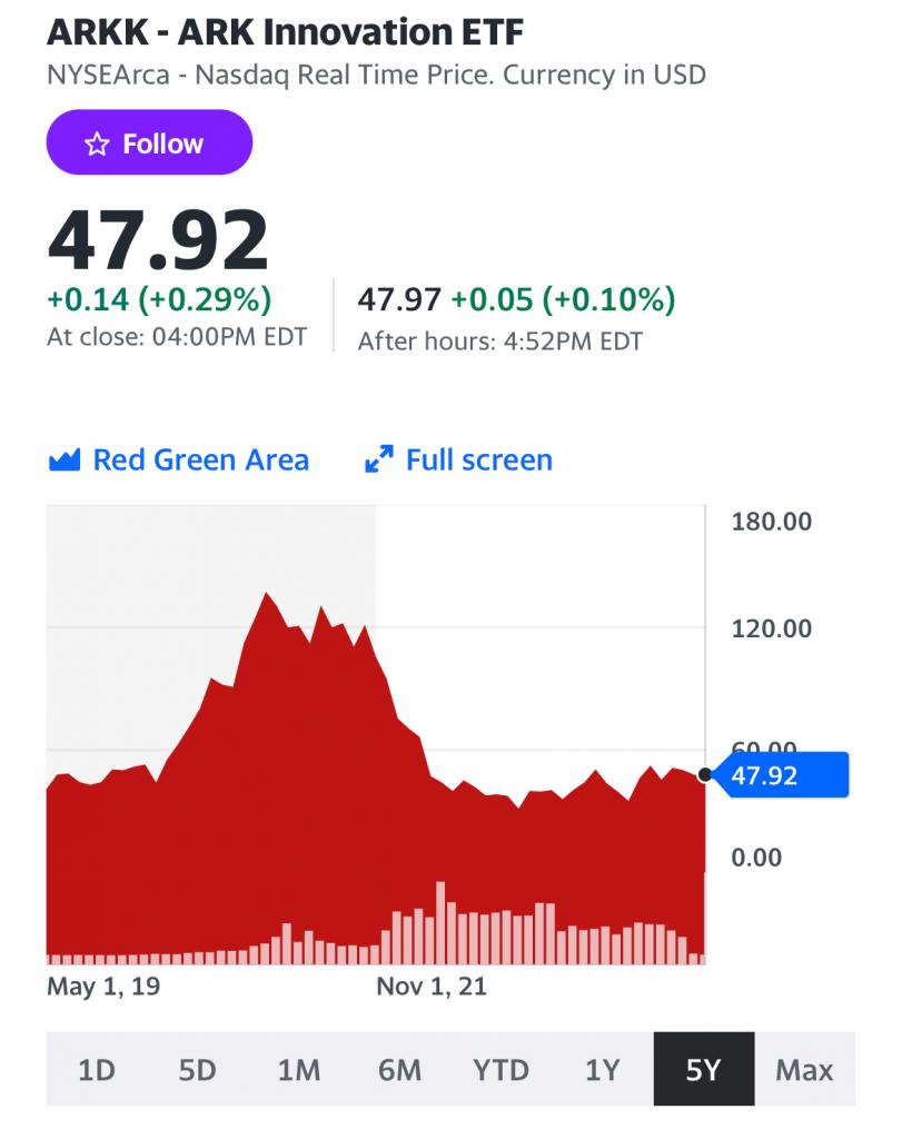 ARKK har haft en avkastning som är hälften av COMP på 10 år trots Tesla. Det måste vara svårt att vara så dålig.