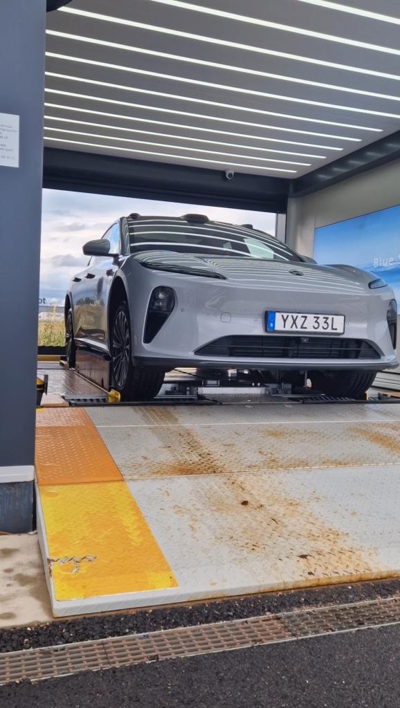 Färden rullade vidare utan några problem. Lugn trafik ända genom Jönköping och upp till Mantorp. Där rullade vi in på NIO's Power Swap Station med 8% SoC kvar. 20 procentenheter mindre än förra året, trots mestadels stabilt väder. Vi körde ju dock den något längre vägen i Skåne.