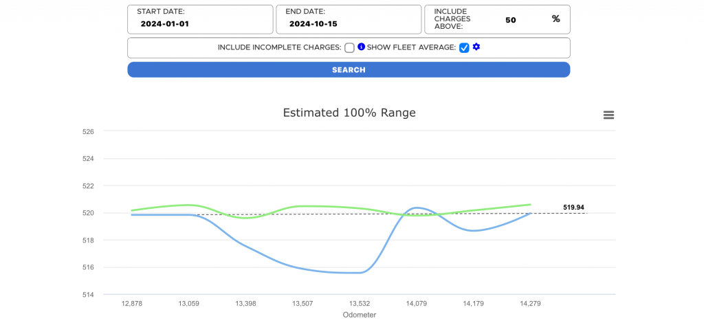Grafen för genomsnittlig räckvidd i hela flottan antyder att det skulle kunna vara mjukvarurelaterat, något som syns ibland när man fått en ny mjukvara och grafen gör ett plötsligt hopp för att sedan balansera ut igen.
