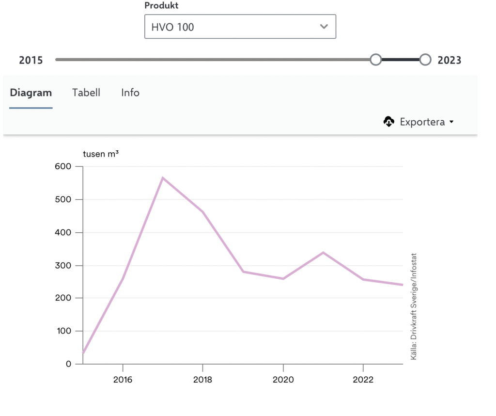 2018 infördes reduktionsplikten i Sverige vilket gjorde att du fick en viss andel förnyelsebart i den vanliga dieseln, kan det vara anledningen till att färre valde att tanka ren HVO100? Om man kollar på försäljningen månadsvis så har HVO100 gått upp ordentligt i år så vi kommer nog hämta in delar av det tappet i år faktiskt.