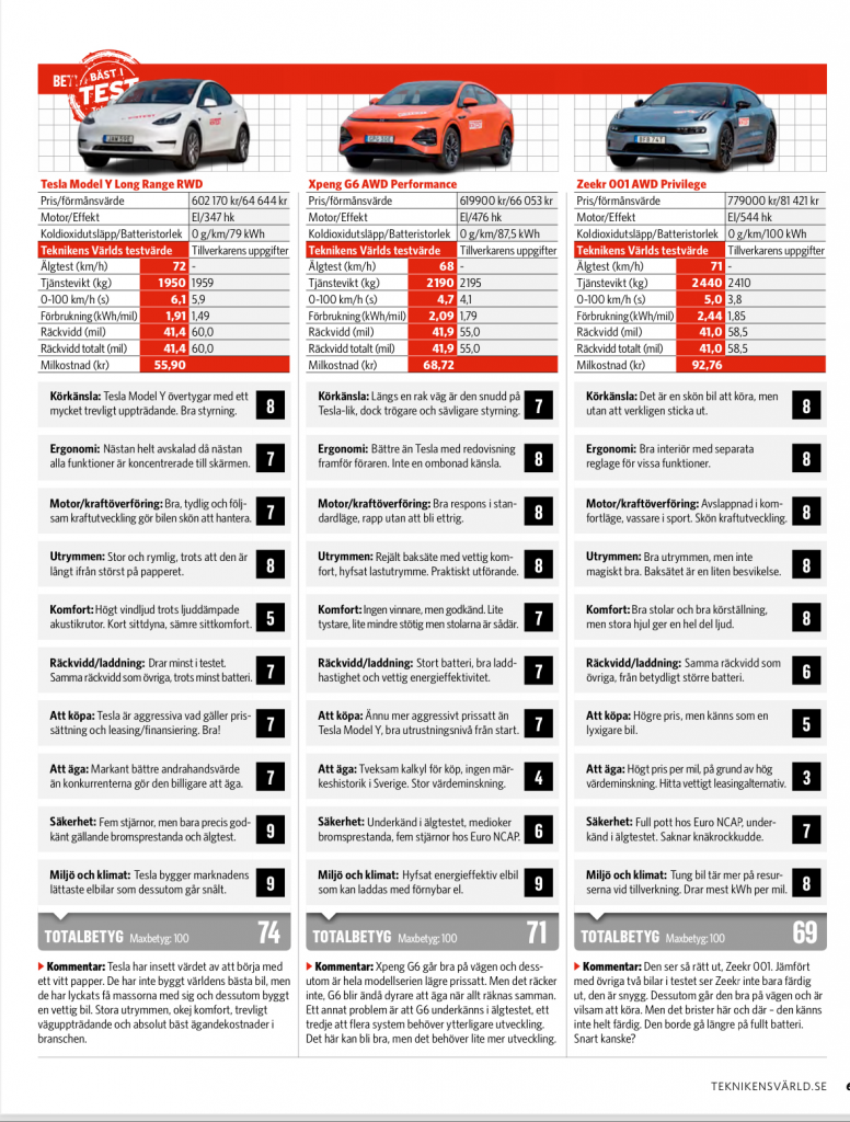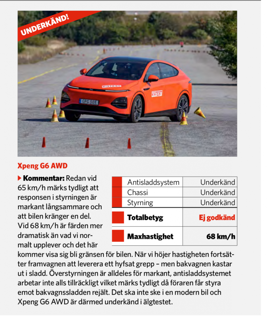 Intressant att de presterar så dåligt i älgtestet. Och både Zeekr och Xpung fick tydligen underkänt(!)...