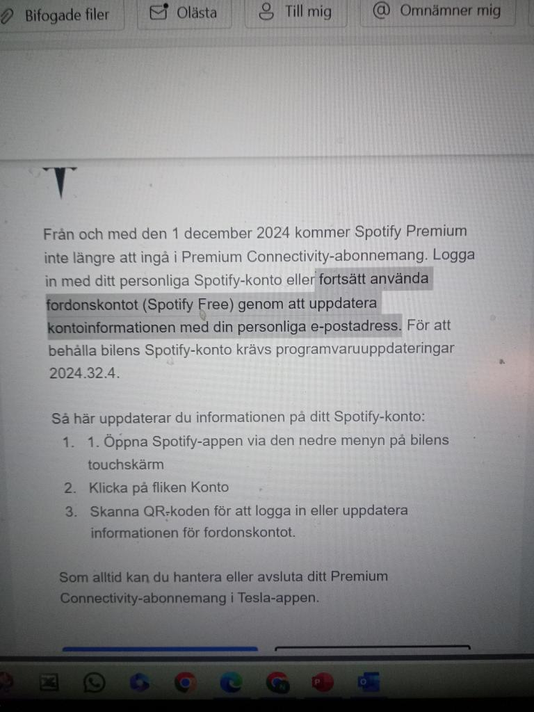 Det är ännu en utgift som adderar på driftskostnaderna, jag kör ca 200mil/mån, varav ca 150 i teslan, det är alltså 66 öre milen bara för premium connectivity, vilket förstås hade varit ok om det var saker jag tycker jag behöver, men nu är det ju inte så.99kr är en struntsumma i sammanhanget. Dessutom har De flesta människor redan ett Spotify konto. Det är inte det som avgör om man köper en Tesla eller inte.