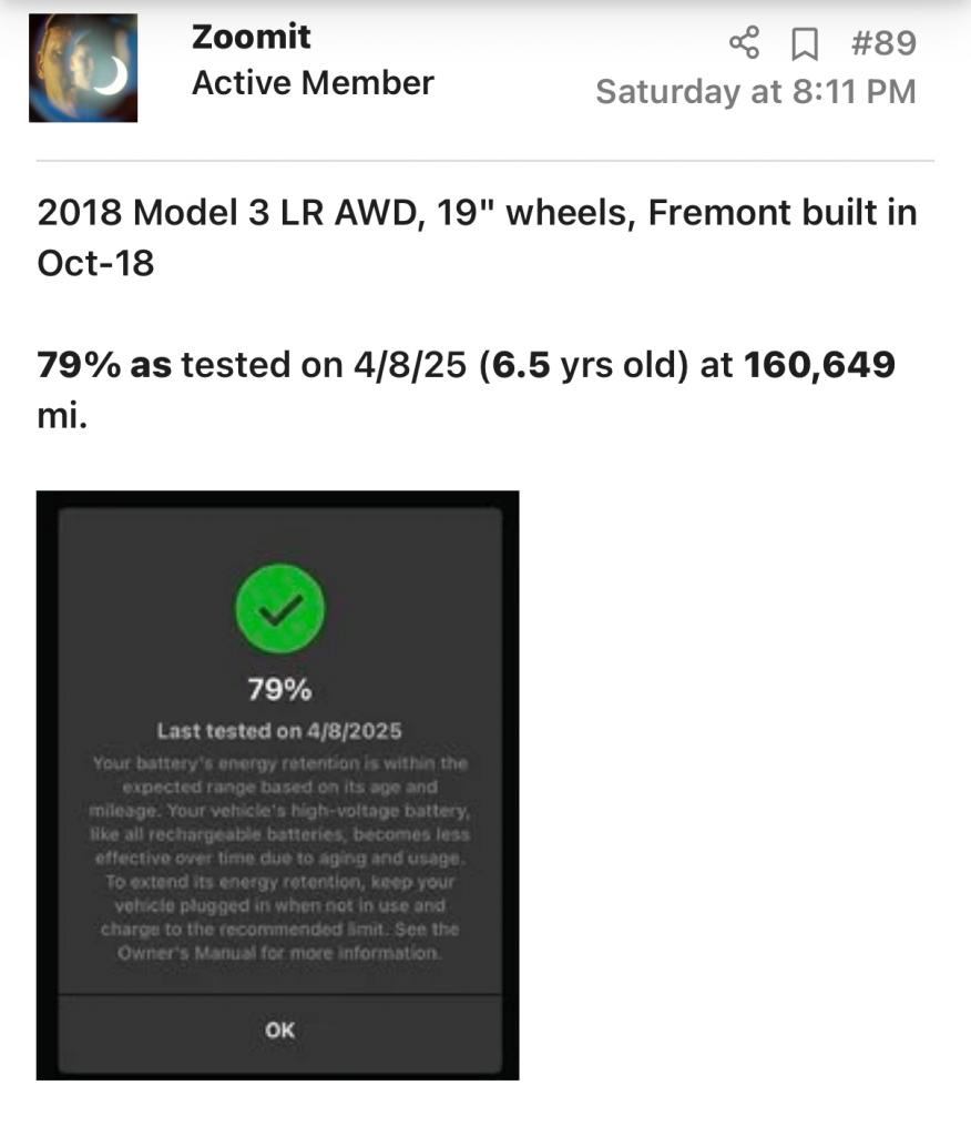 (Alla batterier som är över 70% är per Tesladefinition bra).