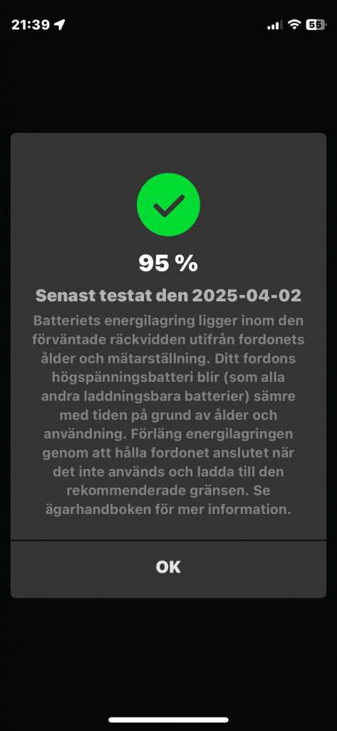 Om man gör batteritestet får man en annan med högre SOH / lägre degradering.