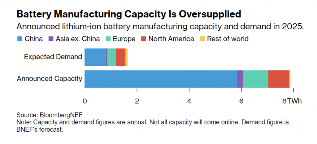 Du läser inte på, och hänger inte med. Det är känt sedan länge att överkapaciteteten ÖKAR varje år inom batteritillverkning fram till 2030. Trots detta sjunker litiumpriset som en sten.SwedishAdvocate skrev: ↑06 dec 2024 23:48Det var väl inte så länge sedan som det var brist på batterier till bilar och 'alla i legacy auto var helt körda eftersom de till skillnad från Tesla inte hade egen batteritillverkning'. Sen hände det saker som vi inte får diskutera på forumet(?) som skapade en hel del inflation ––> stopp i ekonomin + slut på elbilssubventioner + sänkta fossildrivmedelspriser.fth skrev: ↑06 dec 2024 23:28Detta är ju dessutom en produkt med ett pris som i princip är i fritt fall, det bör vara näst intill omöjligt att komma in så sent i marknaden utan någon som helst innovation.