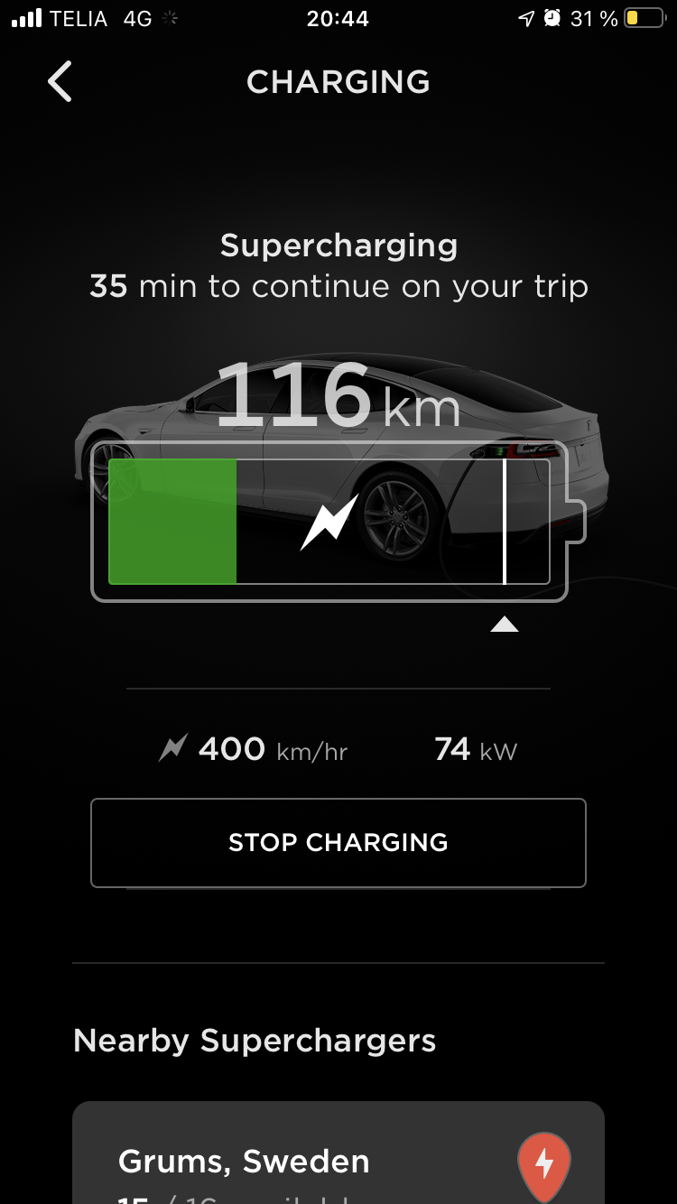 Läste för snabbt sist, har fortfarande 48.12 (inte. 26. Laddahastigheten på min 85 D är enligt bilderna (startar på 125 kw).Det är ok till ca 50% där efter segt så högre fart hade varit fint!AndersBosson skrev:Jag har samma nu som innan, dvs 125 kw vid riktigt låg Soc sedan fallande ner till ca 50 kw vid dryga 50% Över 50% Soc har jag inte snabbladdat sedan uppdateringen men kommer göra det imorgon, uppdaterar då. (verkar inte vara någon skillnad från tidigare)Richardk skrev:Någon mer som laddat ner senaste mjukvaran med 85kwh batteriet och fått snabb laddning igen?