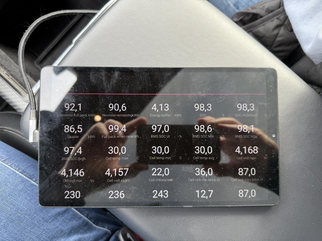 Nu ännu mer som talar för att packet är defekt. 92kWh här, tillverkad 2022-10jpetters skrev: ↑24 apr 2025 19:29Var rätt lite trafik idag = NFP nere på 78.3kWhTellus skrev:Fast i detta fall är det något som ej stämmer med batteriet, låg SOC 80% av tiden? Och kallt klimat? Borde ligga runt 90kWh?AAKEE skrev: ↑14 apr 2025 21:40Vi börjar ha sett flera bilar som ”tappat” kapacitet efter testet.