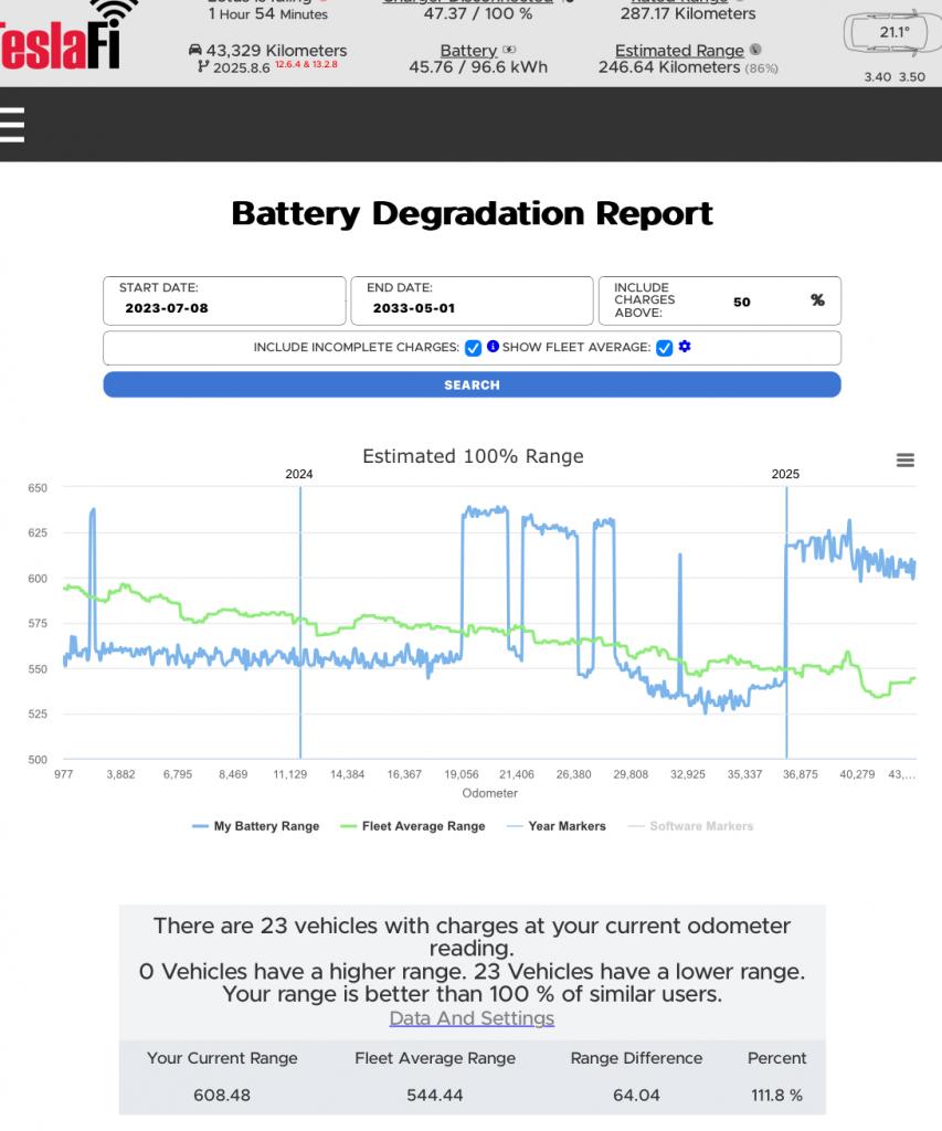 Helt riktigt, har redan fått det svaret på ett service case jag loggade igår.AAKEE skrev:Det värsta är att Tesla kommer säga att allt är okey så länge batteriet ligger på rätt sida 70%. -aTellus skrev: ↑25 apr 2025 00:43Nu ännu mer som talar för att packet är defekt. 92kWh här, tillverkad 2022-10jpetters skrev: ↑24 apr 2025 19:29Var rätt lite trafik idag = NFP nere på 78.3kWhTellus skrev:Fast i detta fall är det något som ej stämmer med batteriet, låg SOC 80% av tiden? Och kallt klimat? Borde ligga runt 90kWh?AAKEE skrev: ↑14 apr 2025 21:40Vi börjar ha sett flera bilar som ”tappat” kapacitet efter testet.