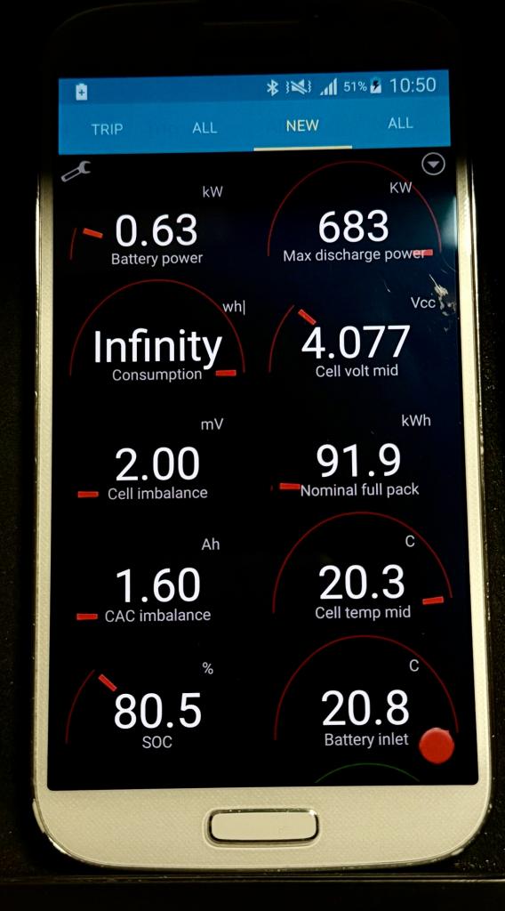 Min bil har i princip alltid haft 2mV vid 80%, och 8-10 vid 50-55%. Varje gång jag laddar högt går den via låg imbalans vid 80%.