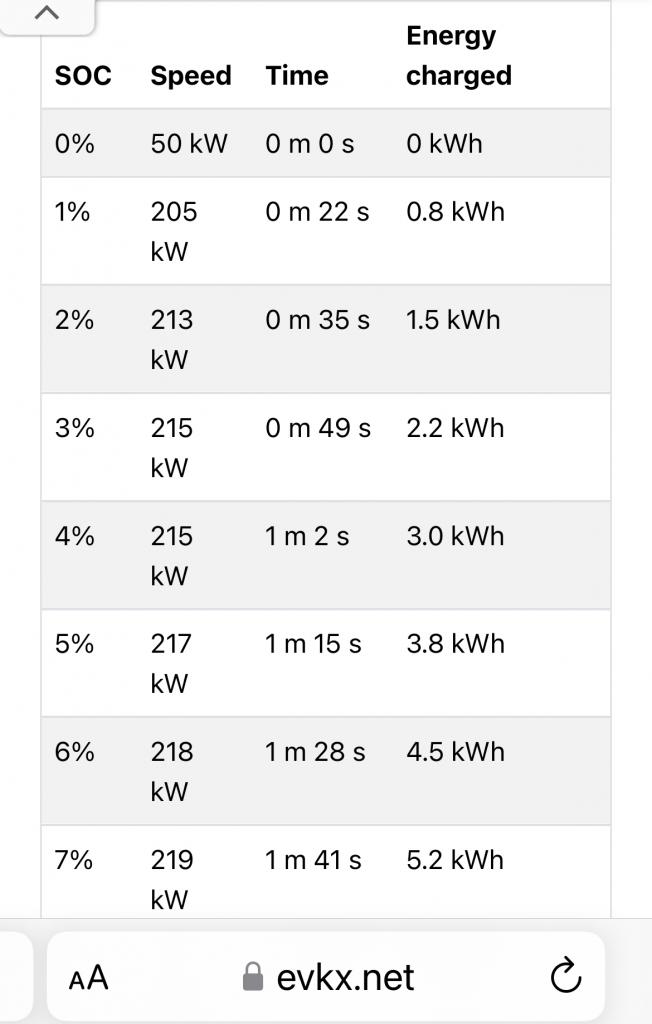 *Tid och snitteffekt i intervallet gäller om man kopplar in med 10% eller mindre. eGMP bilarna har inte en statisk laddkurva. Kopplar man in med högre SOC får man även högre snitteffekt i intervallet, så länge temperaturen är hög nog i början av laddningen.