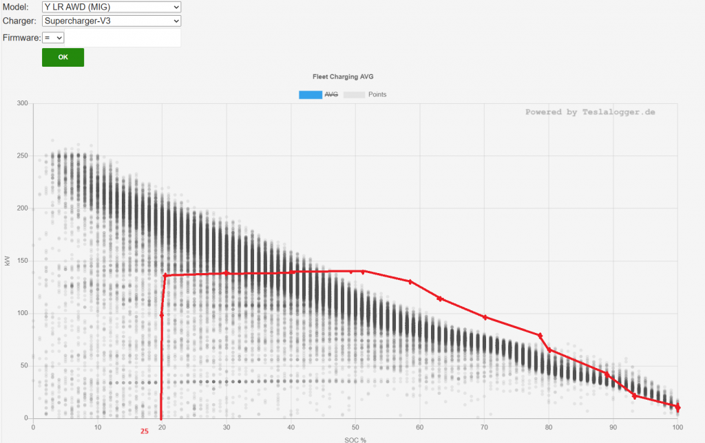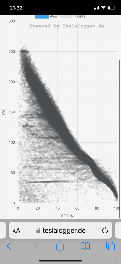 Sedan styr tillgången på laddare men en Tesla 3/Y LR/P laddar såhär (LG-batteriet):