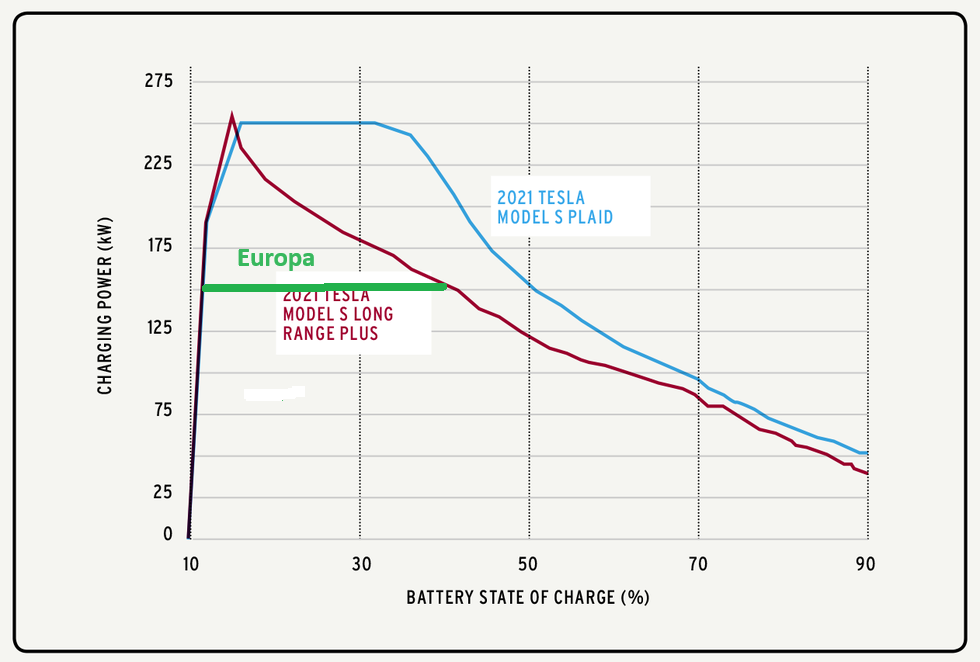 I realiteten med ordentligt förvärmt är nya S nära på dubbelt så snabb 0 till 40%, och vid 50% och 60% skiljer det 32% i laddeffekt. Vid 70% skiljer det 25% laddeffekt.