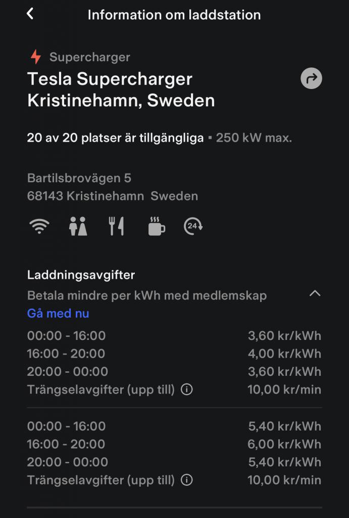 Så bra <3 <3 <3 sänk gärna mer men nu känns det helt ok jämfört med Spotpriserna (ca 2,5sek) med ca 3,5sek/kwh hos Tesla.Tellus skrev:Japp, upptäckte det precisKnix skrev:Priserna för icke-Tesla utan abbonnemang är 5-6 kr/kWh. Med abonnemang är priset fortfarande 3-4 kr/kWh enligt appen. Antar att samma som tidigare gäller för Teslor.Tellus skrev: