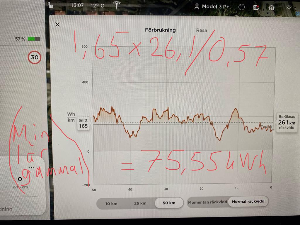 Men är inte uppvisat resultat i appen och i bilen beroende på bilens körhistorik de senaste 50 kilometerna och även rådande utetemperatur?