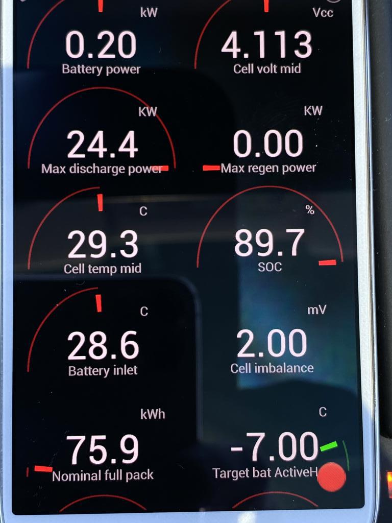 Laddade till 90% nu, blev 448km. 574hk, batteri 29 grader.