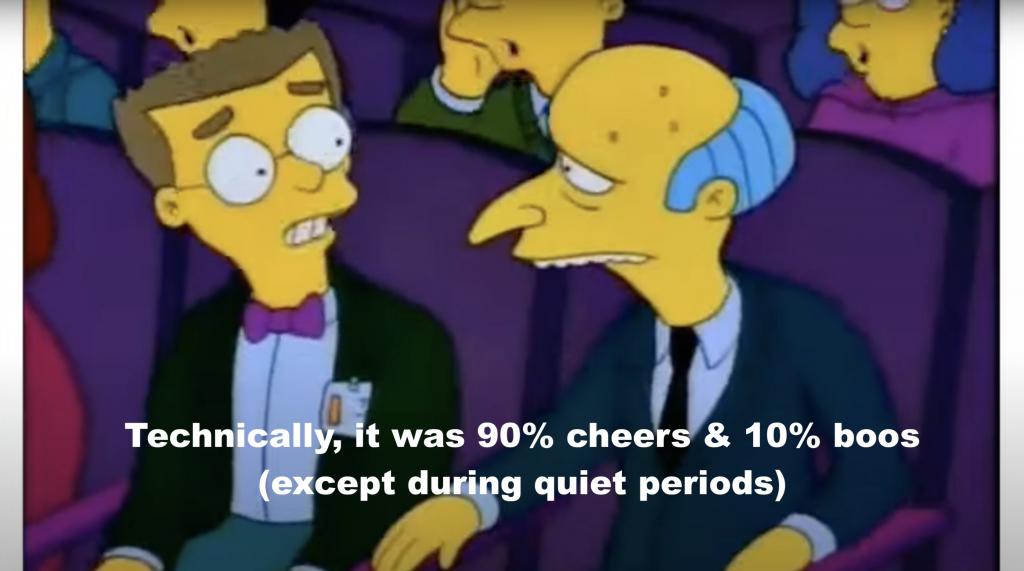 Peppers: "For the first minute, everyone was cheering, I hardly... I didn't hear any boos".