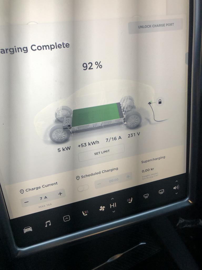 Sen drar den ju ner laddströmmen på slutet. Så det tar ofta lite längre tid än man först tror. Särskilt om man gör lite manuell ”huvudräkning”.