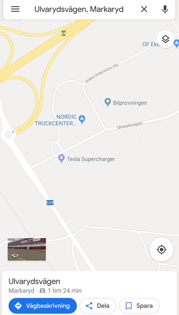 Den är välkommen, intressant att de sambygger genom något helt annat bolag, i detta fall ett Växjöbaserat. 20 laddplatser är väl ganska mycket med så de måste räkna med att den blir välanvänd. För min del hamnar den perfekt när jag vintertid kör Skåne tur och retur över dagen.DanielKihlgren skrev:Ser ut som att bygglovet är godkänt för Markaryd Supercharger. 20 laddplatser Om någon vet vilken fastighet Ulvaryd 7:1 är så har ni platsen