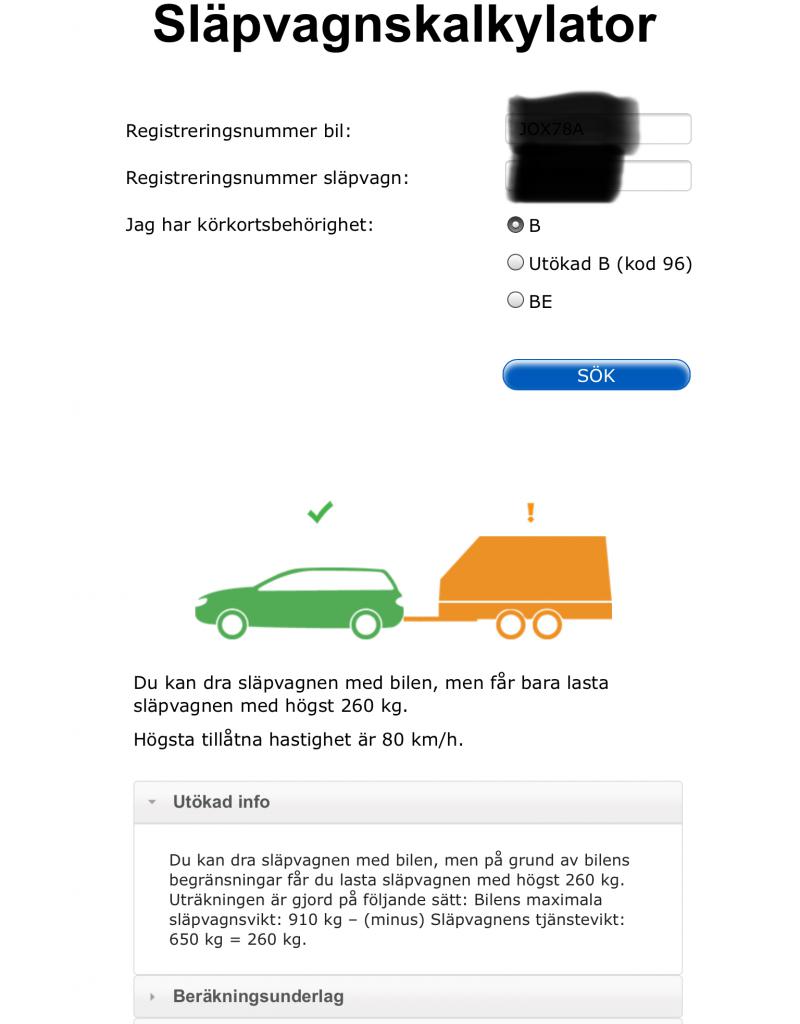 Som sagt är det kalkylator som räknar på bilens totalvikt. Kalkylatorn skulle ju också kunna väga in bilen tekniska dragvikt i resultatet.