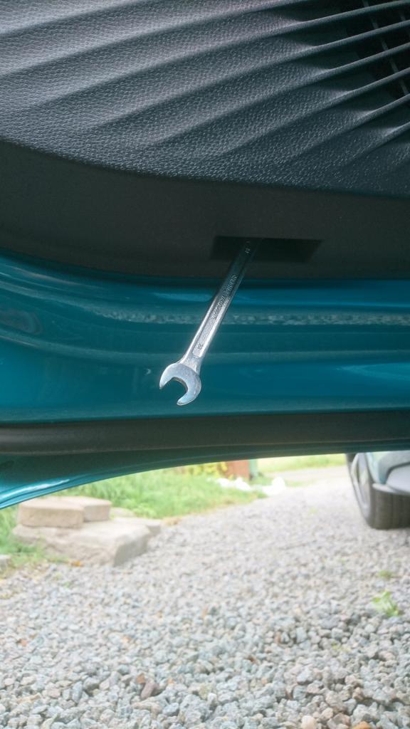 Undersidan på panelen är säkrad med en konstig skruv (10 mm nyckel) som skall vridas 90 grader.download/file.php?mode=view&id=23745