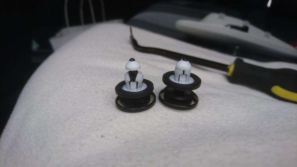 Nu skall clipsen lossas. Dra försiktigt i dörrsidan och kör in plastverktyget mellan panel och plåt. Lokalisera clipsen och försök spänna isär clipsen. Om man lyckas poppar de ur enkelt om man misslyckas poppar de ur med en smäll. Då får man ta bort dem från dörrpanelen efteråt och dra ut dem. De skall dras ut så de går isär så att säga. Se bilden.download/file.php?mode=view&id=23750